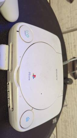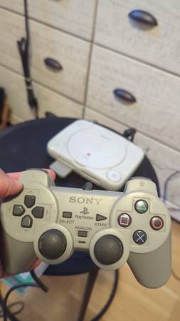 Selling an PSOne version of the Playstation 1. This item includes the AC adapter, AV Cable, dualshock controller (gray) and PSOne Dualshock controller (White) *Rayman game has sold). This console works beautifully. I cleaned up a bunch of gunk on it and got it working again. The only thing that's not working great is the PSOne Dualshock controller. That one seems to come in and out. I've tried working on it but can't seem to get the fix right. I'm throwing it in anyway, you can try to fix it. Otherwise, the gray Dualshock controller works perfectly. I'm selling these together for $45 cash or zelle. Email if interested and we can meet at a public place near downtown or the near-south side.