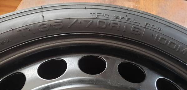 GMC 2018-2023 TERRAIN/ DENALI SPARE TIRE VGC USED ONCE FOR VERY SHORT DIST. SIZE T135/70R 16 >>>>>PICKUP ONLY<<<<< HICKORY HILLS IL. NEAR 95TH AND I 294 $110.OBO