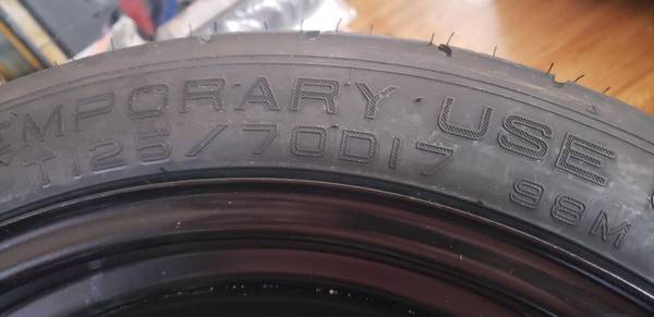 NEW SPARE TIRE ( T125/70D17) AND NEW JACK FITS MANY MAKES AND MODELS CHECK PICTURES PICKUP ONLY NEAR HICKORY HILLS $120/ OBO