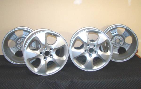 Jaguar S-Type Aluminum Rims and Center Caps Restored to Like New Condition, Reconditioned and Painted Silver and Clear Coated From a 2003 Model Jaguar S-Type Series 3.0 Color: Argent Silver PCD...