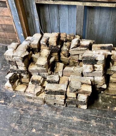 Around 100 Chicago common bricks. From an indoor section of removed chimney, so there is some soot on the inside side of the bricks. Also many have mortar that will need to be cleaned off.