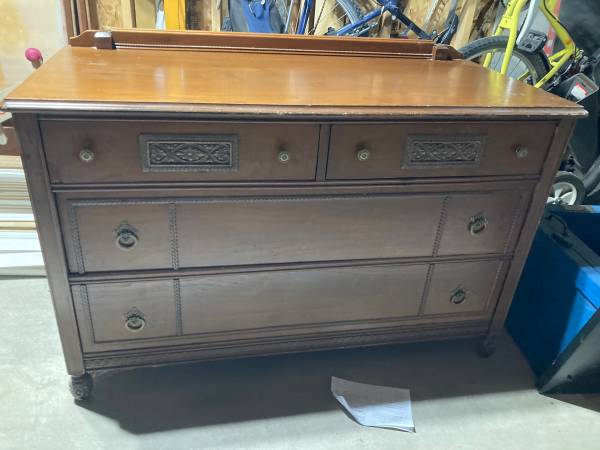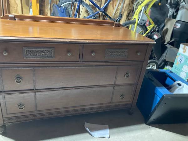 This well maintained dresser is 47.5 inches wide, 22 inches deep, and 31 inches tall, and free for pick up. The weather is too volatile to leave it outside, so text if you are interested. I can help load in the evenings. I also have two record stands available. One is homemade the other is diy assembly, still in the box