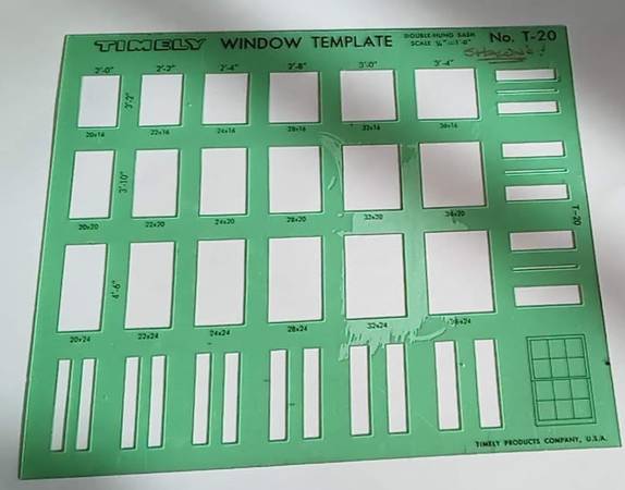 T20 Timely Double Hung Sash Window, Window 525, and Furniture, $5 each N.D.M.A.-approved modular designs for 18 standard size windows. Scale: 1/4"=1'. Size: 6"x7"x.020". Made in the USA pet and...