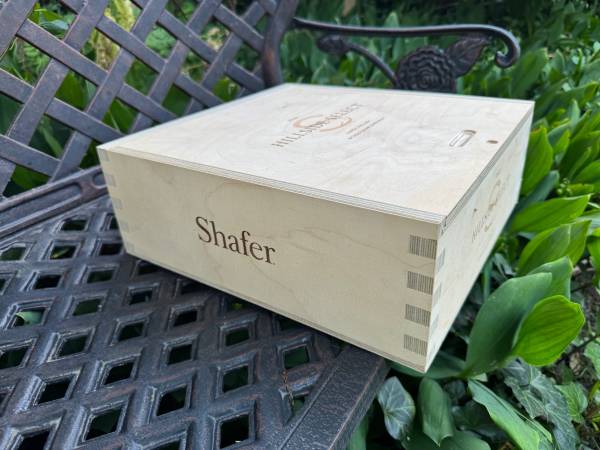 Shafer Vineyards Napa Valley Wine Crate with lid and bottle inserts 13”x13”x5"
