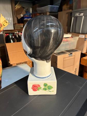 This is a vintage hand-painted ceramic female head, often used as a hat or wig stand, made by the Italian company Quadrifoglio Florence.