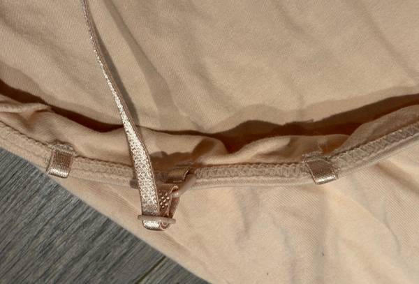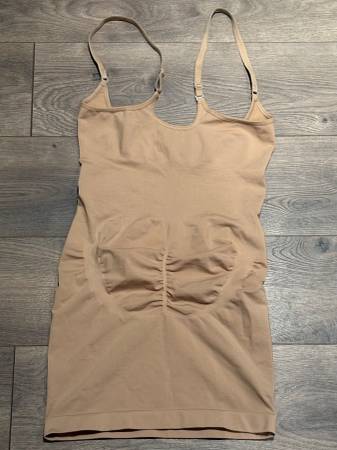 The tan/light beige spandex control top dress features adjustable shoulder straps and built to stretch in the right places. To be worn underneath a dress, and is $8.