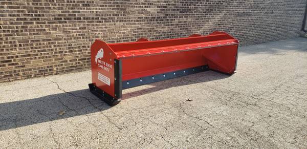 Tired of having a snow pusher that is under qualified for the job? Then step up to the Drift Ram Sno-Box snow pushers. Manufactured by Jay-R's Steel & Welding Inc. In Mundelein, IL our line of Sno-Box snow pushers offer operators all the necessary tools to get the job done right the first time. Constructed of 3/8" steel side boards with an 11 ga steel moldboard, our boxes are solid welded and built to the highest industry standards. Our Sno-Box snow pushers offer either steel or rubber cutting edges. Our rubber cutting edges offer slotted holes for adjustability and prolonged usage. Our steel cutting edges are made from 1/2" AR-400 plate to ensure a long life. Our snow pushers are painted using a two part epoxy paint that ensures a clean even coat that looks great and resists fading from UV rays. The epoxy coating offers a slick surface area, ensuring quick evacuation of snow from the plowing surfaces.