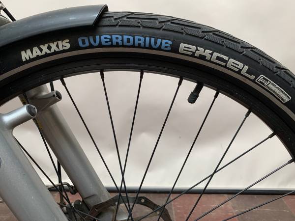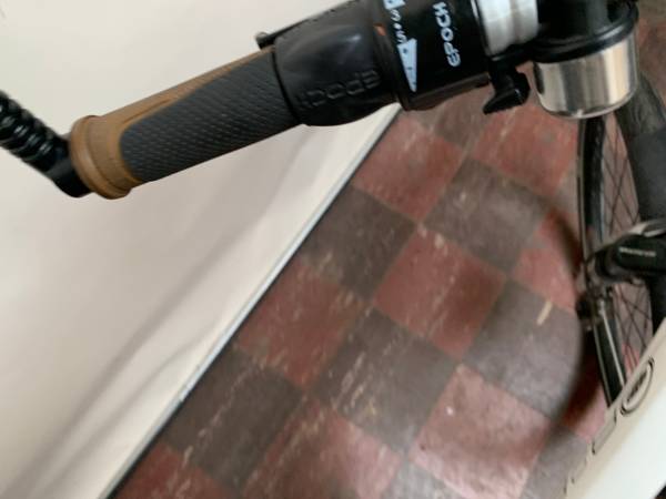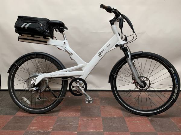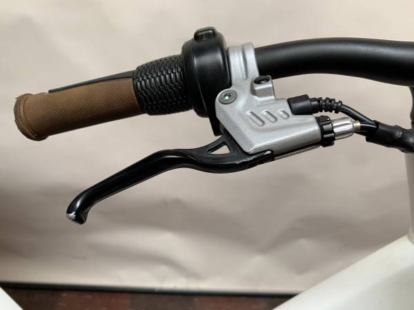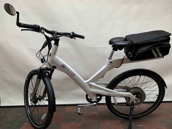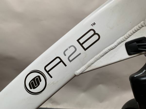 A2B Velociti electric ebike. German designed. This bike is better made than most ebikes. This bike is comfortable to ride. It is better balanced than most ebikes. 7 speeds. BB5 disc brakes. Step through design is easy to mount. Twist throttle. 36 Volt. With battery charger and your choice of 10 or 20 Ampere hour battery. 20mph top speed. Great tires. With dinger. With Miracle rear view mirror. With your choice of several seats. Presently it has my choice of seats on it, a special needs seat, which is designed for those who do not like the typical triangular seat. I even have a new A2B seat available. With a suspension seat post and a front suspension fork. There is a built-in chain guard to protect you and your clothes.