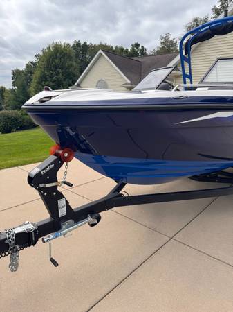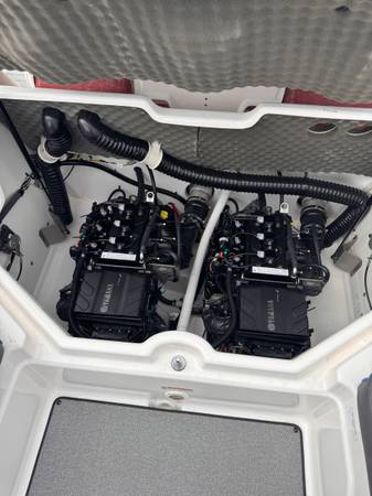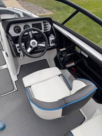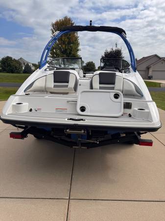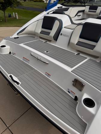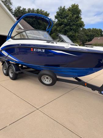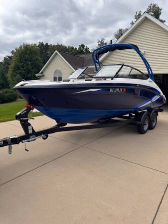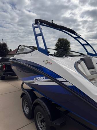 2020 Yamaha AR210 Jet boat. Super clean! Never stored in the water or outside. Stored in heated storage area during the winters. All service/maintenance done at a Yamaha dealer. The 2020 Yamaha AR210 is a 21-foot jet boat powered by twin TR-1 HO engines (1050cc each), designed for watersports and family cruising, with features like a Connext touchscreen, a forward-swept water sports tower, in-floor storage, and a shallow draft for easy navigation. Accommodates up to 10 people, has a dry weight of approximately 3,228 lbs, Life vests/jackets, corkscrew type anchors, rope, several bumpers, extra seating (from factory) and dual axle trailer all included. No issues and the boat runs out great.