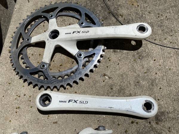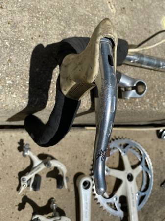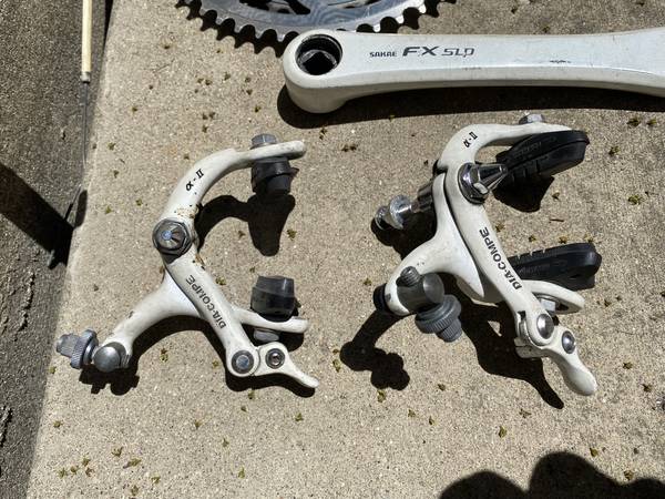 Also available a wheelset for extra $50. Rear is good, 6-speed cassette. Front is not true, lose spokes, will require some work. Tires are 700x23, Presta. I did not check if they hold air.