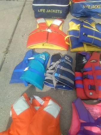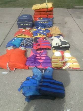 LIFE JACKETS, VARIOUS BRANDS, ADULTS SIZES, AND 2 CHILDRENS SIZE.ALL IN EXCELLENT CONDITION, SOME BRAND NEW, VALUE $ 50.00, TO $ 60.00,, ASKING JUST $ 10.00 EACH. IF INTERESTED PLEASE CALL NO...