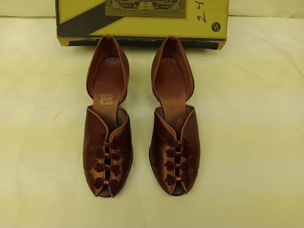These 1930s Danielle Green slippers are looking for a new home. They have been gently used years and years ago. They have a Satin Matt shine with a 2" heel. The shoe is a size 5 1/2, however, not certain of the sizes 90 years ago as of today.