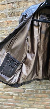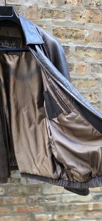 Smoke free, pet free. No rips tears. All zippers and snaps work fine. Beautiful heavy bomber jacket COLLEZIONE. Please ask any questions you may have.