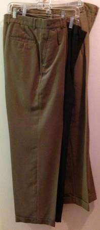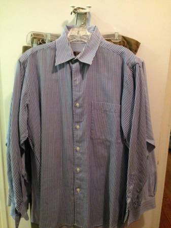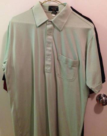 Men's dress shirts, long sleeves, size M, $5 each Men's polo shirts short sleeves, size M, $3 each Men's slacks, size 36, $5 each