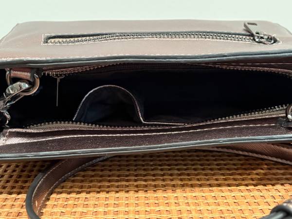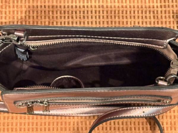 9"W x 7"H purse with exterior zipper pockets on each side, interior zippered pocket, interior 2 open pockets, top zippered closure, and detachable adjustable shoulder/cross-body strap for just $10.