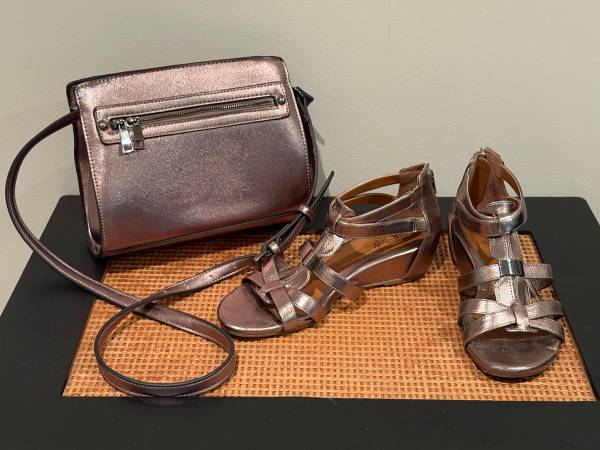 Stunning copper metallic matching Women's size 7.5 sandals shoes and purse in EXCELLENT CONDITION from a clean, smoke- and pet-free home. Only used twice--priced individually or reduced for both.