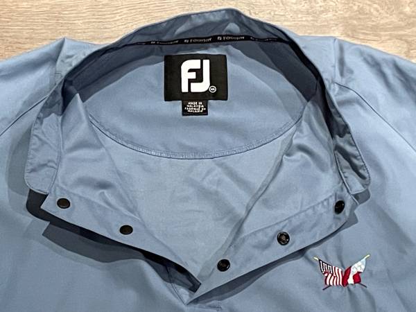 There are two lower side zip pockets to provide easy access to put items in or provide warmth for your hands. Raglan sleeves allow full range of motion during the golf swing. It has an elastic waist for a comfortable and secure fit. An embroidered pair of Secession flags is on the left chest. The FootJoy logo is embroidered at the top of the backside.