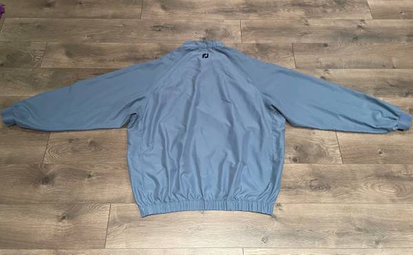 Upscale FootJoy brand performance windshirt that provides outstanding comfort and protection on the golf course or elsewhere to keep you warm during windy conditions. This blue-gray pullover has three-snap construction to allow for easy on/off wear when the weather changes. This lightweight long-sleeve shirt is versatile for all-season wear.