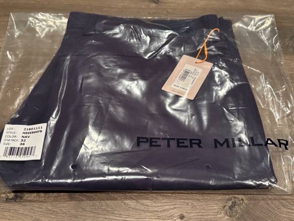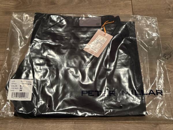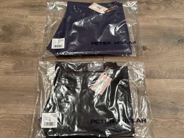 NEW WITH TAGS in PACKAGES--NEVER OPENED. Luxury active wear PETER MILLAR brand Men's 36W x 32" inseam "eb66 Performance Five-Pocket Pant". MSRP tags attached say $149, but now these pants have increased in price to $160 each. 2 colors available: black and dark navy blue. Yours individually for $75, or both for $140 cash total.