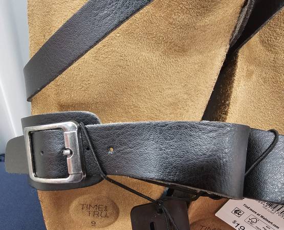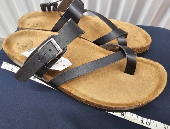 TIME AND TRU Women's Black beautiful leather thong sandals