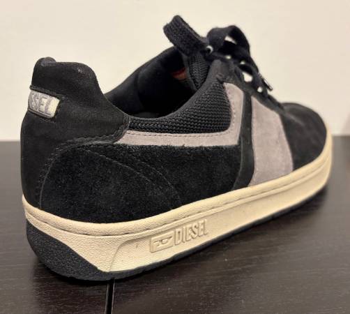 Men's Diesel Casual Fashion Sneakers - Size 7.5 - Black w/ Gray Very gently used (barely used; soles in amazing condition). Size 7-1/2 Leather Upper. Rubber Sole. Black laces. Diesel logo on heel...