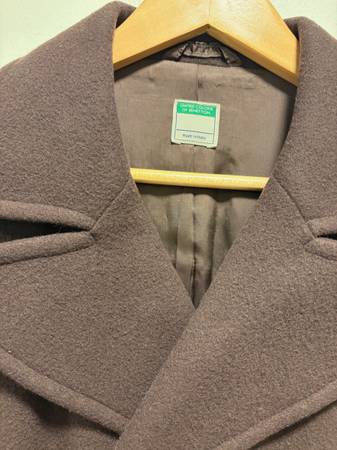 Women's United Colors of Benetton Brown Wool Medium Length Overcoat...