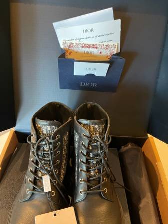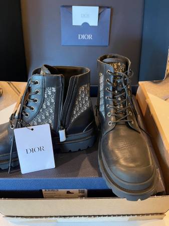 Men's Dior Explorer black boots, European size 46. Never worn. $1,700 new from store. Only tried on then put back in box after finding boots were too small. Forgot to return and so was not able to get a refund. Tags still on boots. Original box and certificates included. Also includes original dust cover and extra laces.