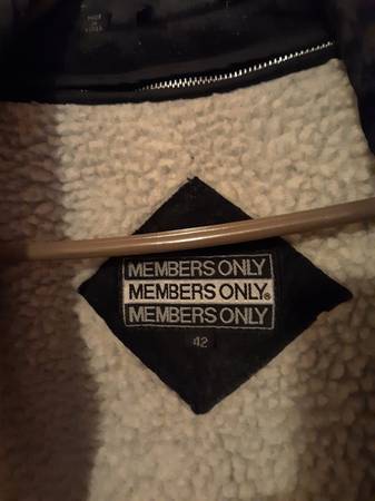 1.) The Black jacket is a Members Only brand sized 42 or large.