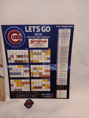 Get this collectable 2016 opening day Giordanos cubs schedule and 2016 Sports Illustrated Kids world series edition. Also included a CubsCare pin.