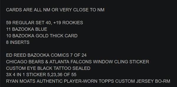 CARDS ARE ALL NM OR VERY CLOSE TO NM