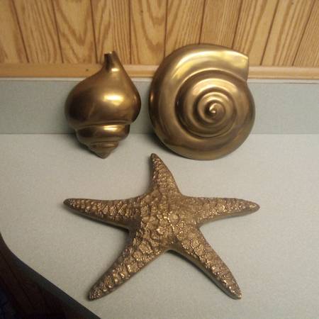 For sale are 2 Brass sea shells and 1 Brass starfish. Nautical beach coastal decor. Priced right compared to $50 + shipping on Ebay. They all have hanging hooks to mount on a wall. Contact me with any questions or concerns. Thanks for viewing my post.