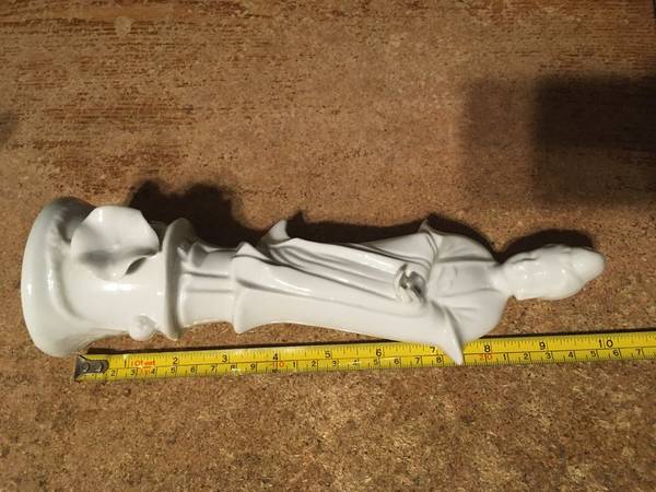 CASH ONLY STANDING ON A PEDESTAL WITH A FLOWER ON THE FRONT, HAS THE THUMBS ON THE HANDS BROKEN OFF. YOU CAN SEE IT ON THE FIRST PICTURE, AND THE SIXTH BETTER