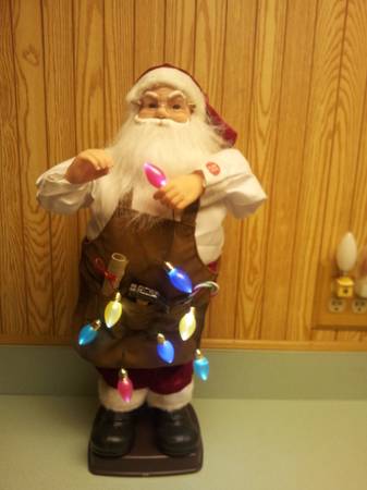 The bulbs light up and sounds crystal clear. Santa is all made in his work clothes and list in his pocket.
