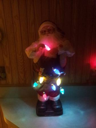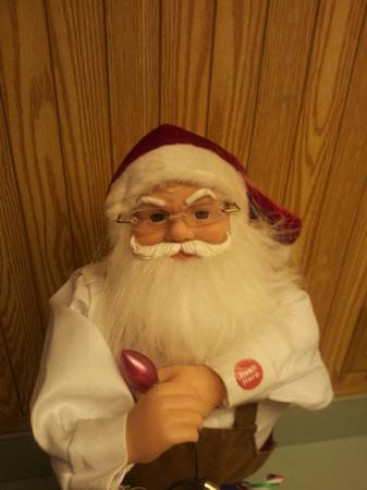 This Santa moves his head and arms back and forth and plays all your favorate Christmas tunes.