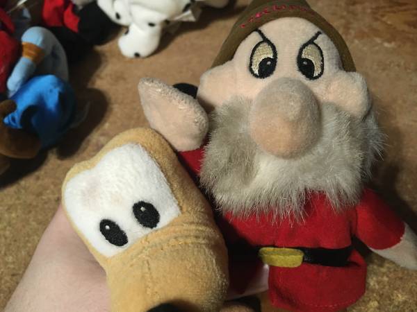 PLUTO HAS A SMALL STAIN BY THE EYE, GRUMPY IS A LITTLE DIRTY. ALL HAVE THE TAG EXCEPT GRUMPY.