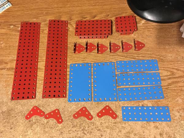 CASH ONLY I DON'T KNOW IF ITS COMPLETE. MOST PIECES ARE IN GOOD CONDITION. ONE OF THE FLAT PIECES WITH 17 HOLES IS BENT, OTHER THEN THAT ALL ARE GOOD. PLASTIC CASE IS IN GREAT CONDITION