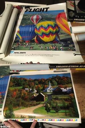 LOT OF 12 VINTAGE ART PRINT POSTERS CHICAGO SKYLINE HOT AIR BALLOON BUDDHA