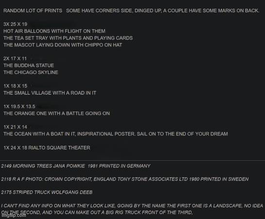 RANDOM LOT OF PRINTS SOME HAVE CORNERS SIDE, DINGED UP, A COUPLE HAVE SOME MARKS ON BACK.