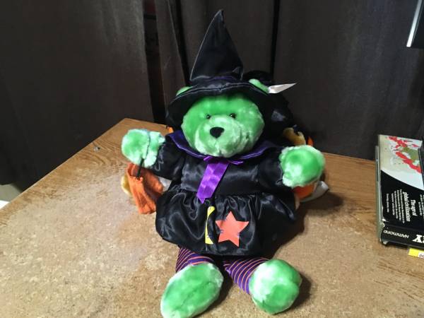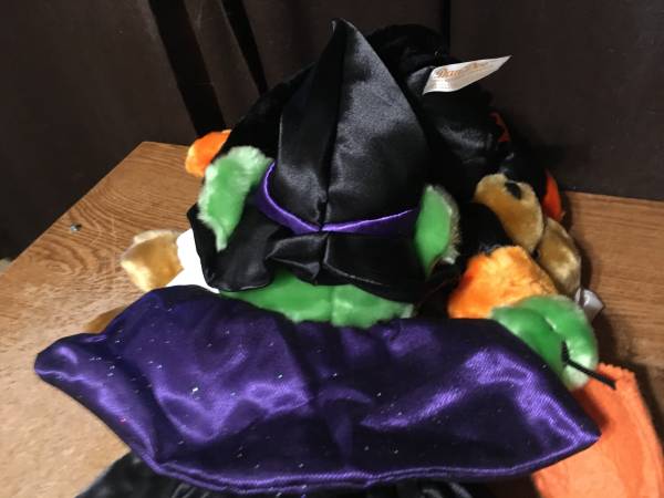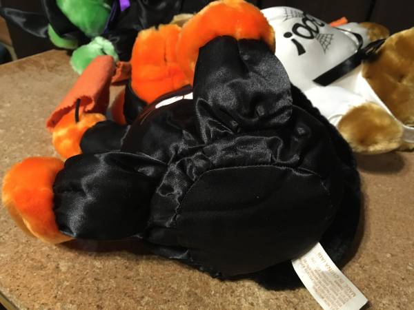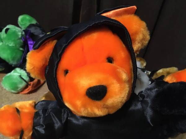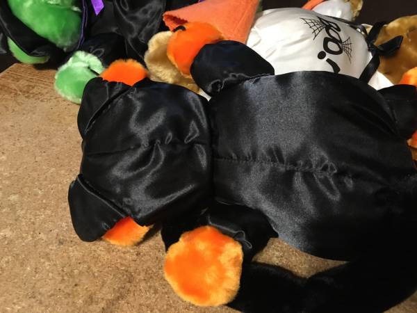 CASH ONLY LOT OF 3 DAN DEE HALLOWEEN BEAR GREEN BEAR WITCH BROWN BEAR GHOST ORANGE BEAR WITCH BLACK CAT TRICK OR TREAT NYLON PLUSH ALL IN VERY GOOD CONDITION, ABOUT 13.5-14" LAID OUT