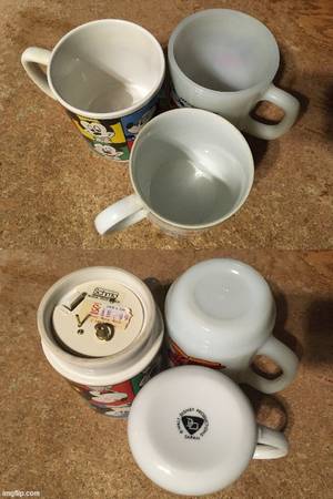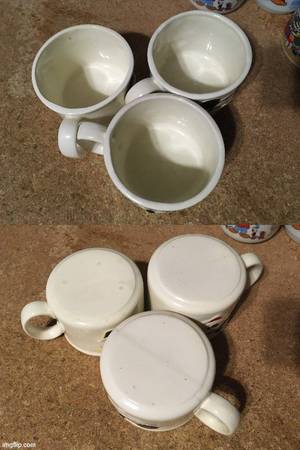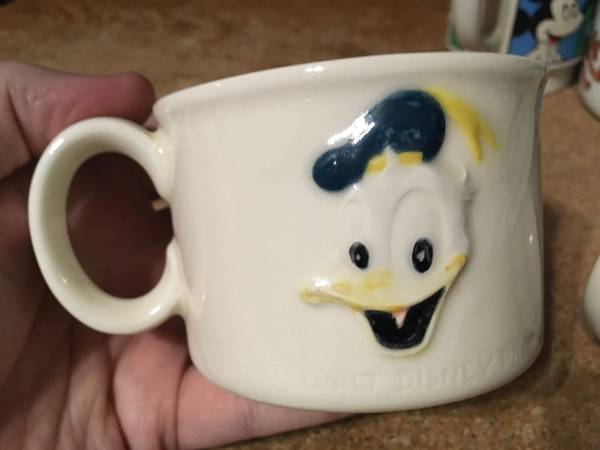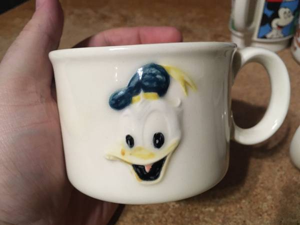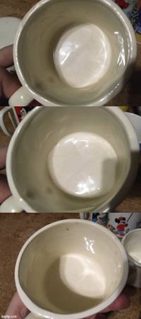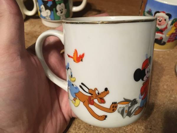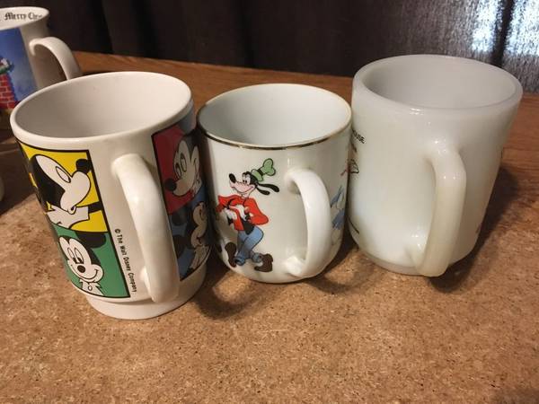 CUPS ARE IN GOOD CONDITION, THE MICKEY MOUSE CUPS HAVE CRAZING ON THE INSIDE IT'S NOT CRACKED IT JUST LOOKS LIKE IT.