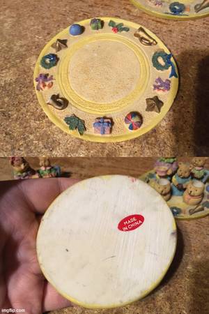 CASH ONLY GOOD CONDITION 6 BEARS 4 BEAR CUPS, CIRCLE TRAY IS THE SIZE OF A COASTER, ONE TRAY HAS MARKS ON IT.