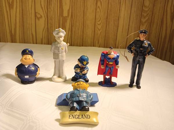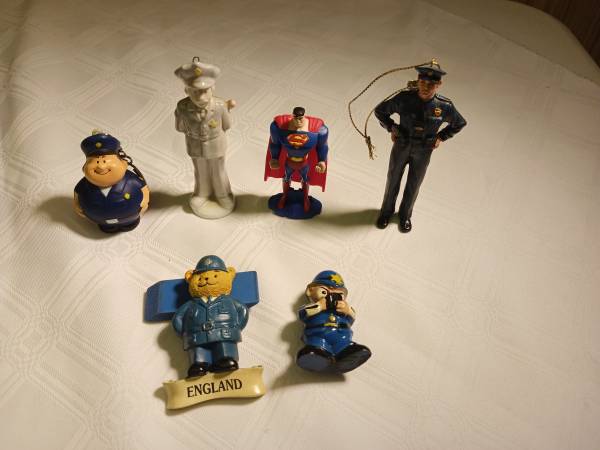 This lot of 6 collectable police and superman ornaments and the Enland bear (magnet) is for sale today for that collector in your life. Makes a great holiday gift. Contact me with any questions or...