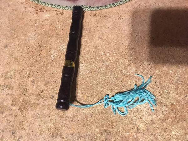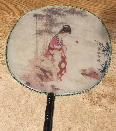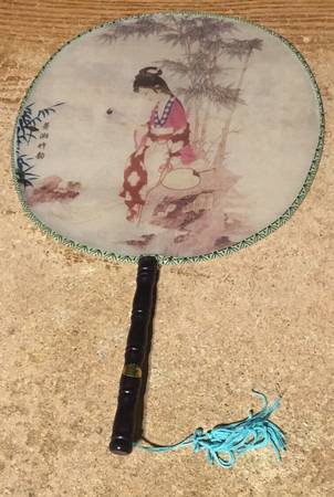 CASH ONLY GOOD CONDITION, FAN PART IS 9 1/2" X 9 1/2" HANDLE IS 5"
