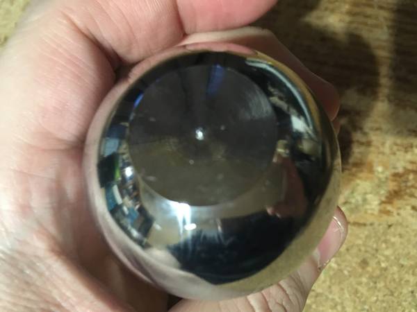 CASH ONLY GOOD CONDITION, HAS A FEW SCUFFS. WEIGHT A LITTLE UNDER 2 POUNDS, SHOWN LAST PICTURE, BALL IS ABOUT 2" ACROSS, THE WHOLE THING IS ABOUT 4 1/4" TALL
