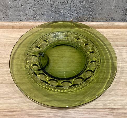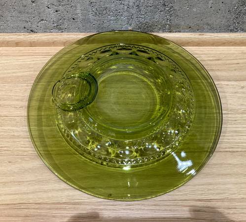 In good vintage used condition with minor wear due to age. No cracks. One snack plate has a small chip on raised notch. Common manufacturing flaws like bubbles, mismatched seams, straw marks, etc. may be visible.