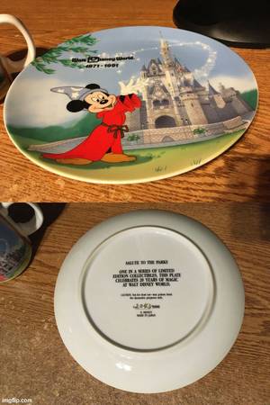 WALT DISNEY WORLD 1971-1991 SALUTE TO THE PARK PLATE & CUP/MUG 20TH ANNIVERSARY PLATE IS LIMITED EDITION 2043/5000