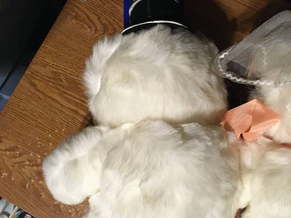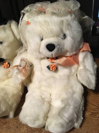 CASH ONLY GREAT CONDITION. GROOMS HAT BOTTOM IS DAMAGED, TOP OF HAT COMES OFF. BOTH BEARS ARE VERY SOFT