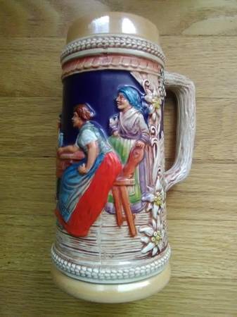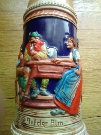 AUTHENTIC GERMAN BEER STEIN - high quality from Bavaria - made in Germany - Auf der Alm - A. Madel - Beim Bier - Ist Mein Plasier - 7.5" height - excellent condition - $58 Bavarian steins Europe...