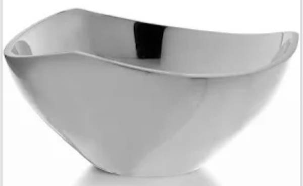 nambe Tri-corner 9.25" Bowl - large silver serving bowl made of metal alloy for hot + cold foods - beautiful modern design perfect for home + bar decor, candy, fruit, salad and side dishes - handcrafted in Santa Fe , New Mexico - U.S.A. - all the elegance of silver and more - includes care and use guide - $109