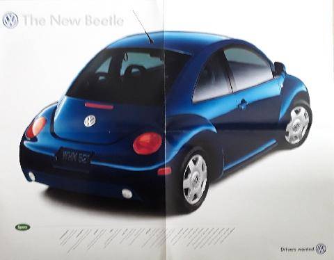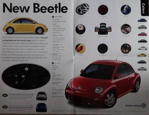 VOLKSWAGEN THE NEW BEETLE COLLECTIBLE 2-SIDED POSTER - 23" x 17.5" - includes car specifications and closeup photographs - new - $17